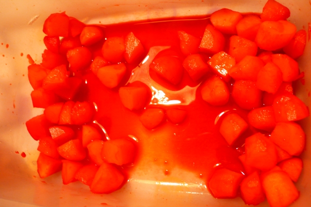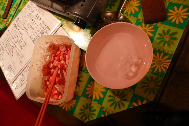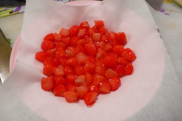 4等分して食紅をつける