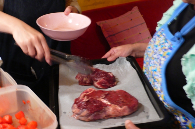 牛肉をオーブンに