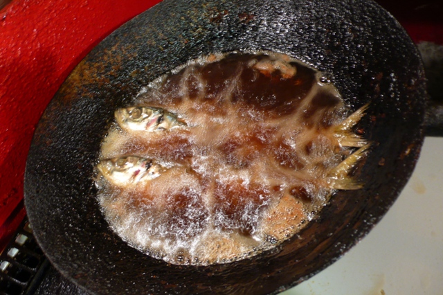 魚を揚げる