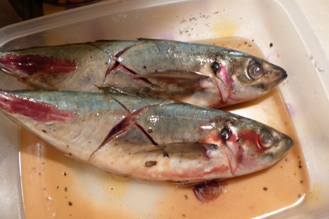 捌き終えた魚を味付け