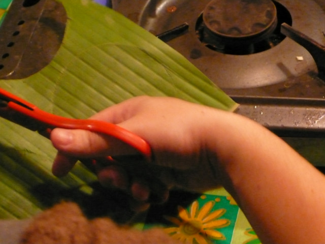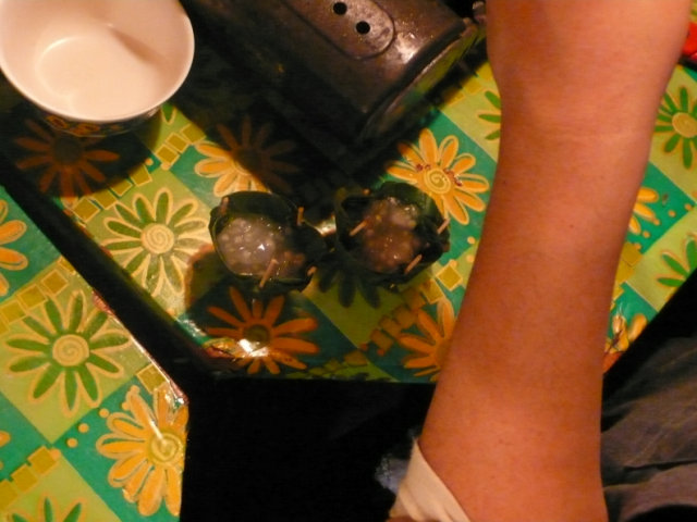 (タピオカとココナツミルクのバナナカップ蒸し)