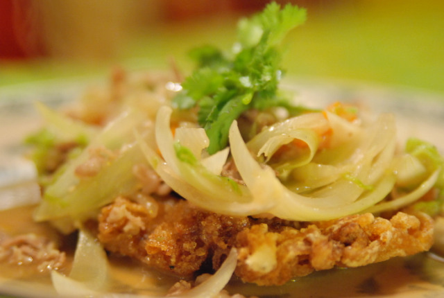 ・フォーサオゾン(堅焼きフォーの豚肉野菜あんかけ)