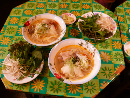 | ・ブンボーフエ(フエの辛い牛肉麺) ・ゴイドュードュー(青パパイヤのサラダ) ・チェーパップ(とうもろこしのチェー) |