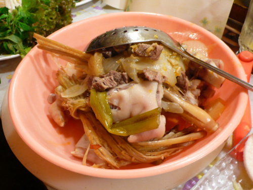 牛肉や豚足を使ったゴージャスなスープ。