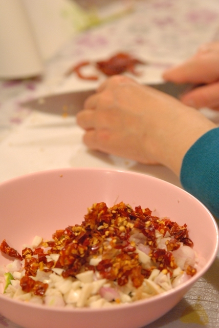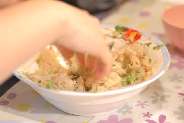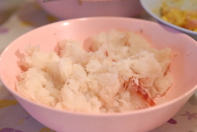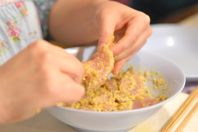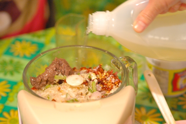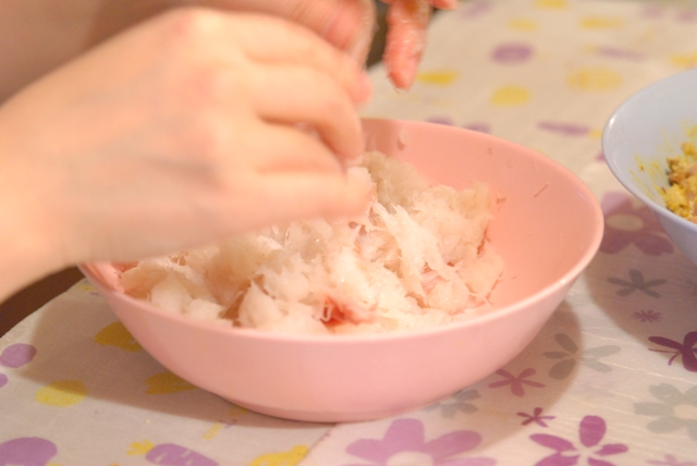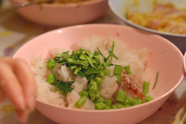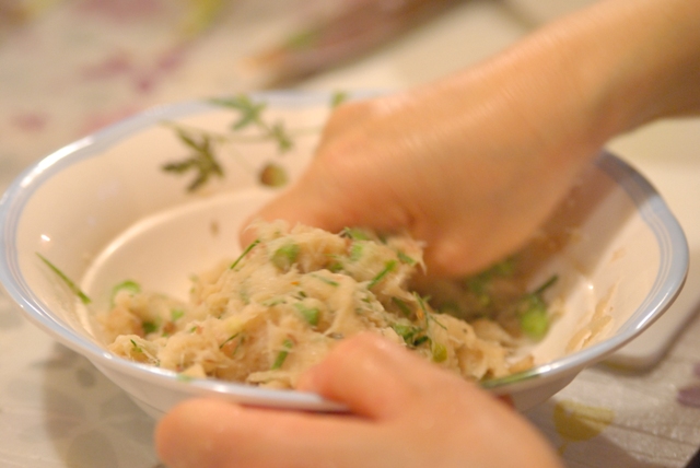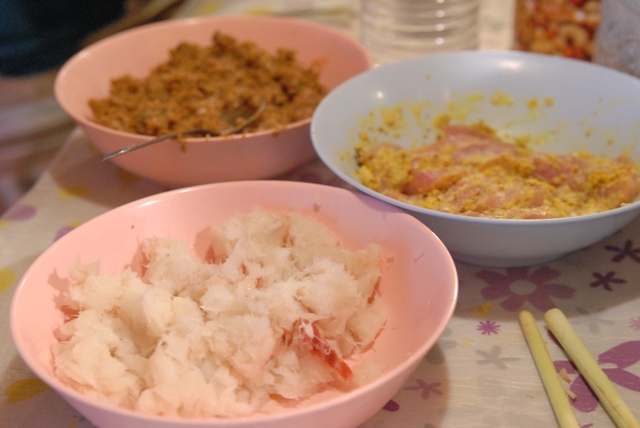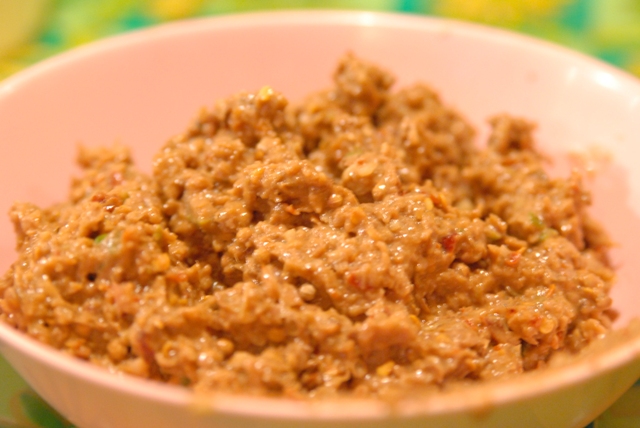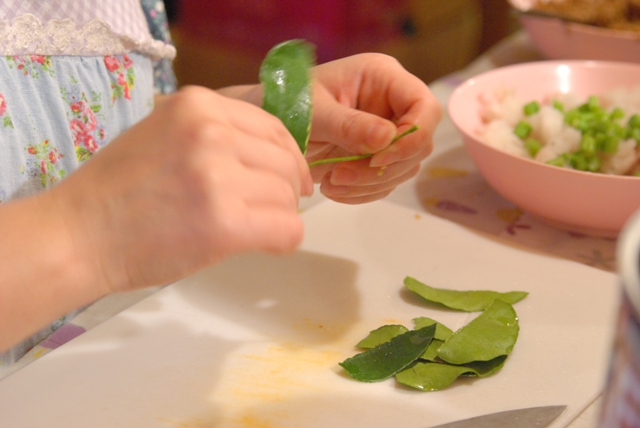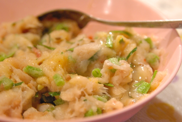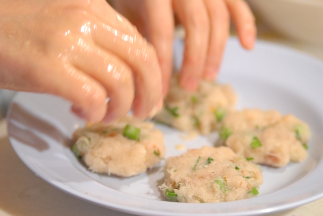 タイ式さつま揚げは、自家製レッドカレーペーストを入れて作ります。